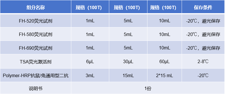 荧光染料工作液配制:将TSA荧光激活剂与FH-XXX荧光试剂按1:500的比例充分混匀后使用