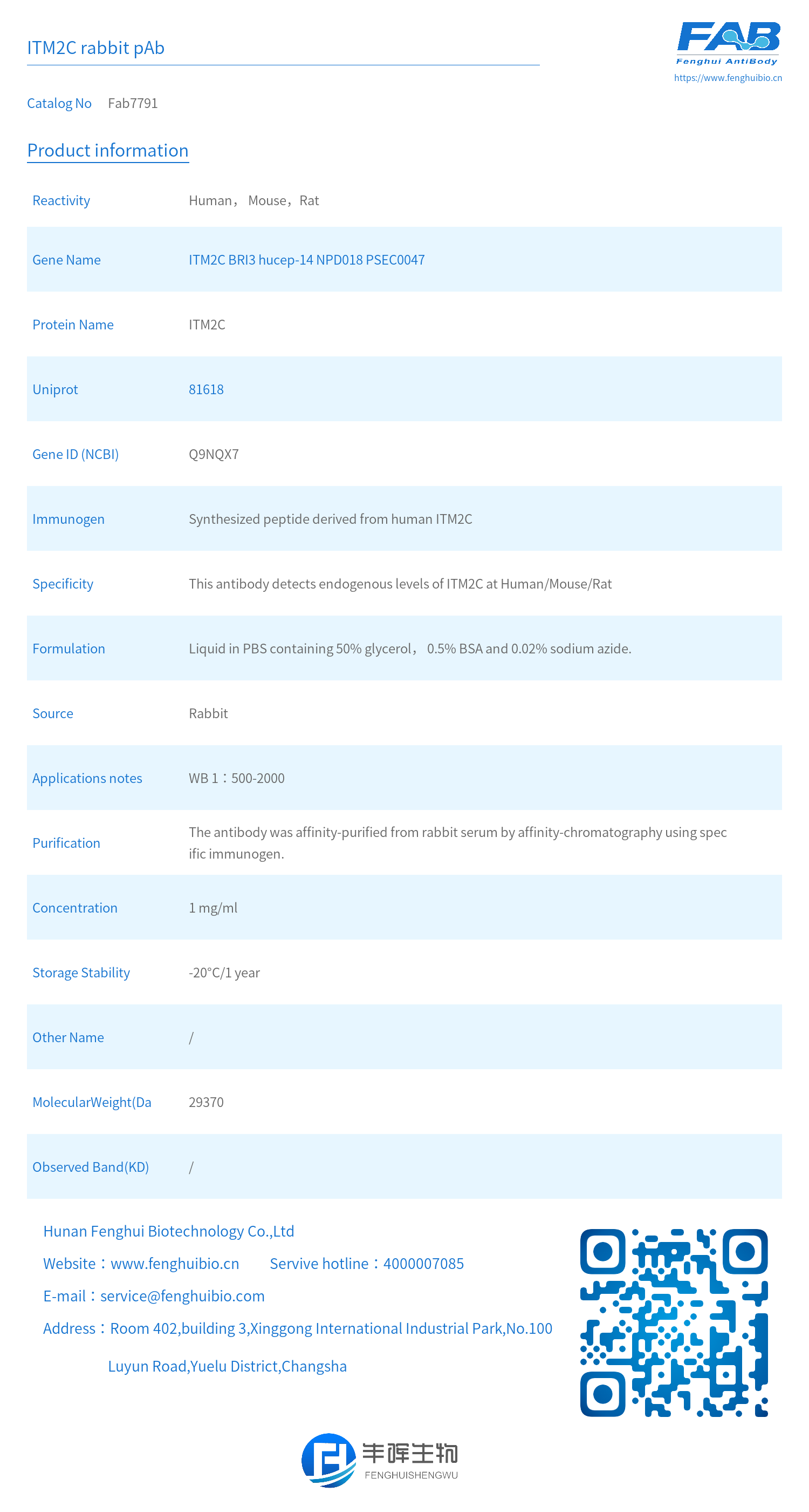 - Specificity: This antibody detects endogenous levels of ITM2C at Human/Mouse/Rat