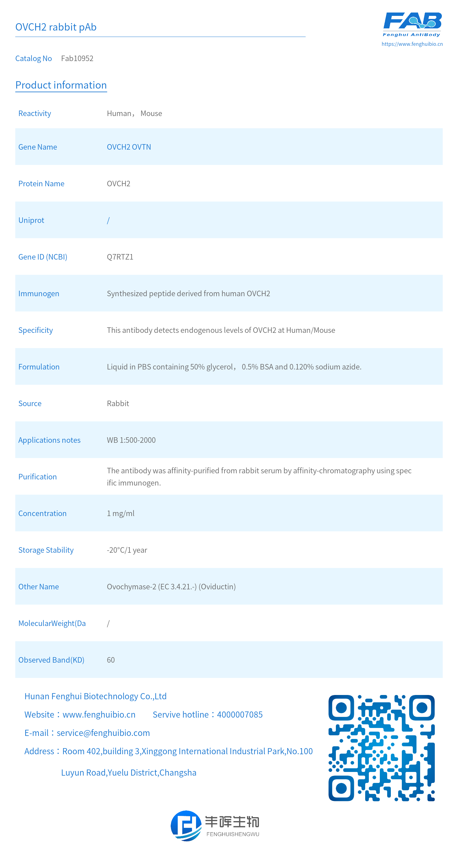 - Specificity: This antibody detects endogenous levels of OVCH2 at Human/Mouse