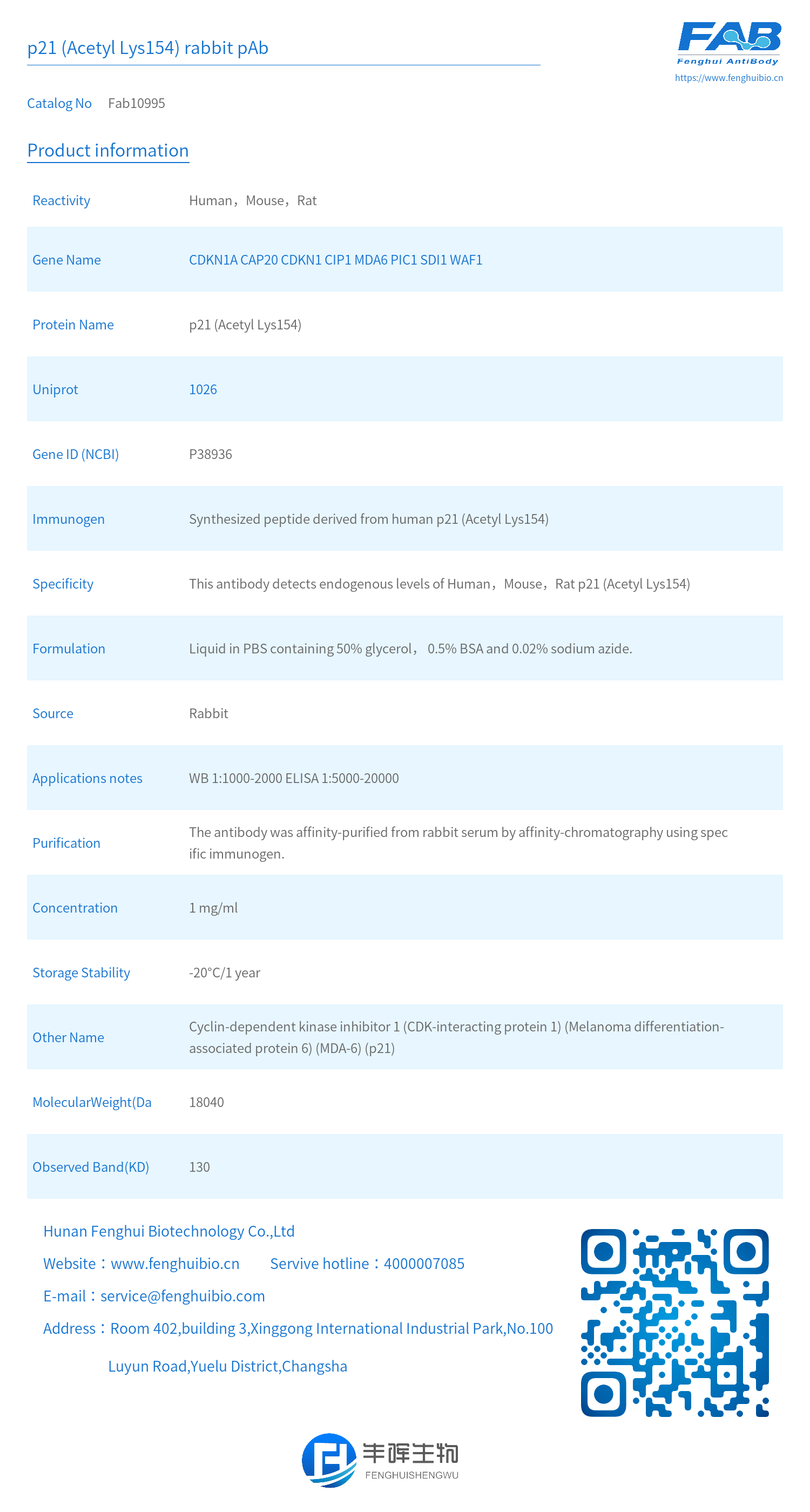 - Protein Name: p21 (Acetyl Lys154)