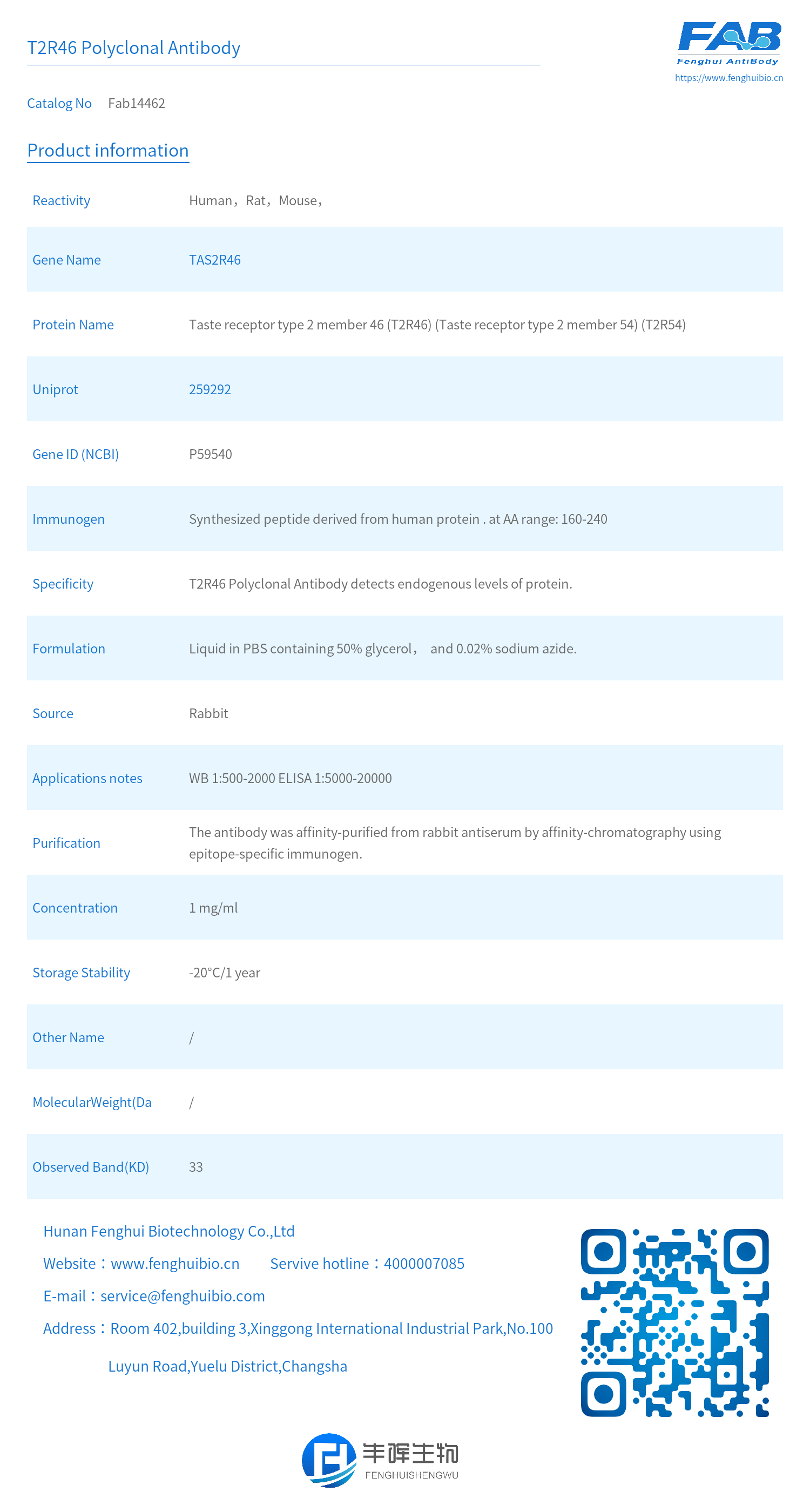 - Specificity: T2R46 Polyclonal Antibody detects endogenous levels of protein.