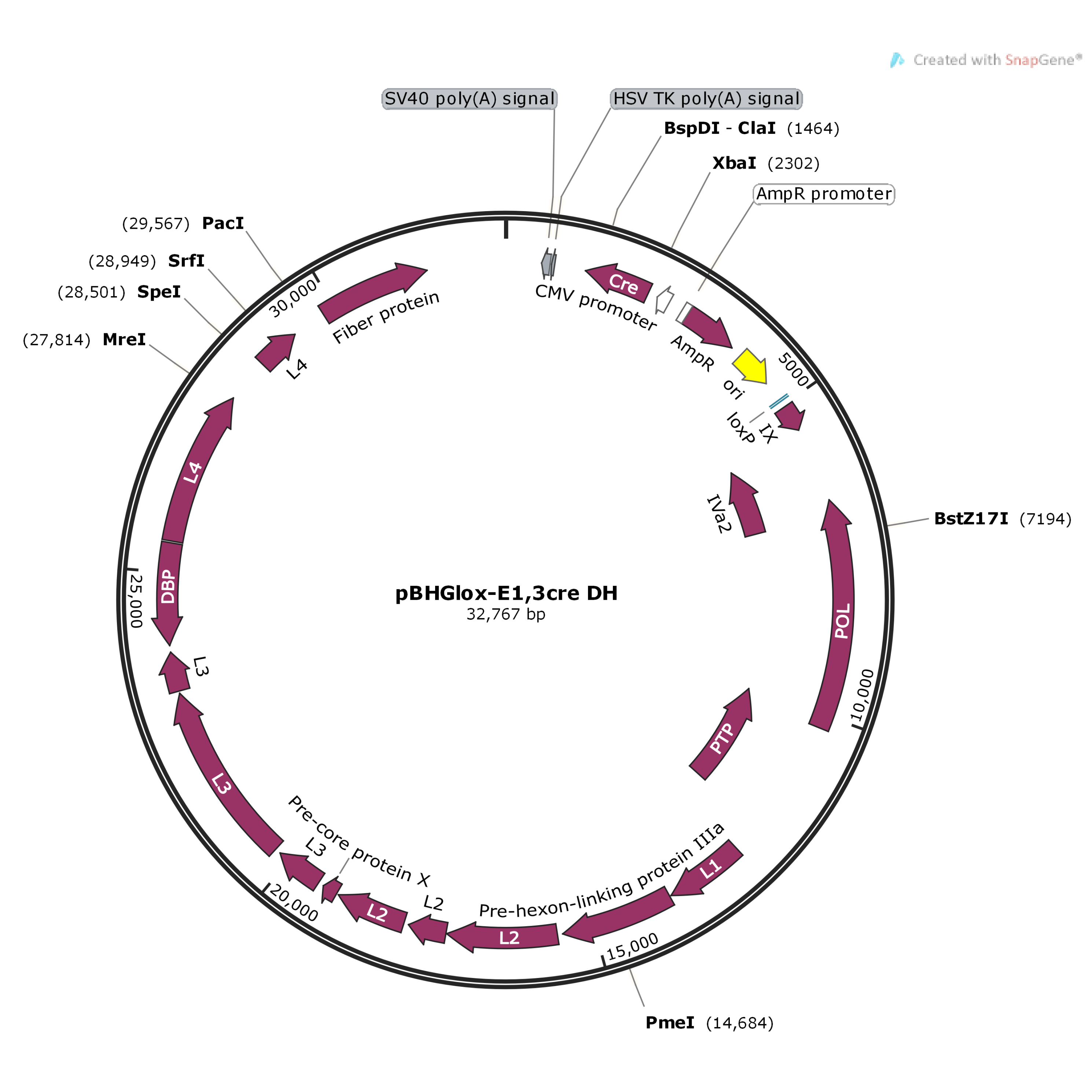 pBHGlox-E1,3cre DH