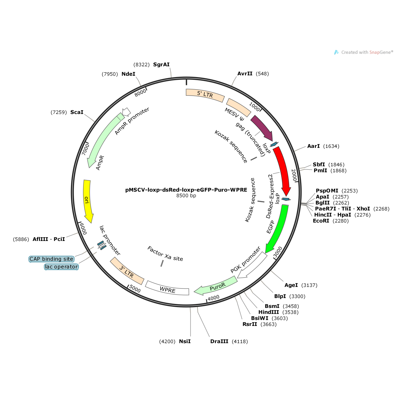 规格:20μl质粒质粒分类:Mammalian Expression, Retroviral, Cre/Lox 质粒大小:8500 bp原核抗性:Amp筛选标记:Puromycin 克隆菌株:Stbl3备注:The depositor notes that XL1-Blue is also ok for general purpose use.