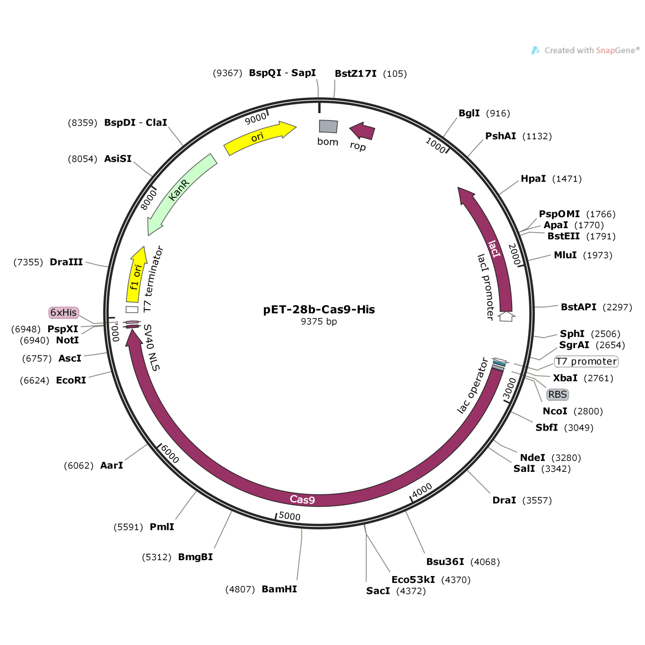 规格:20μl质粒启动子:T7 质粒分类:Bacterial Expression, CRISPR 质粒大小:9375 bp 质粒标签:His 原核抗性:Kan 克隆菌株:DH5α