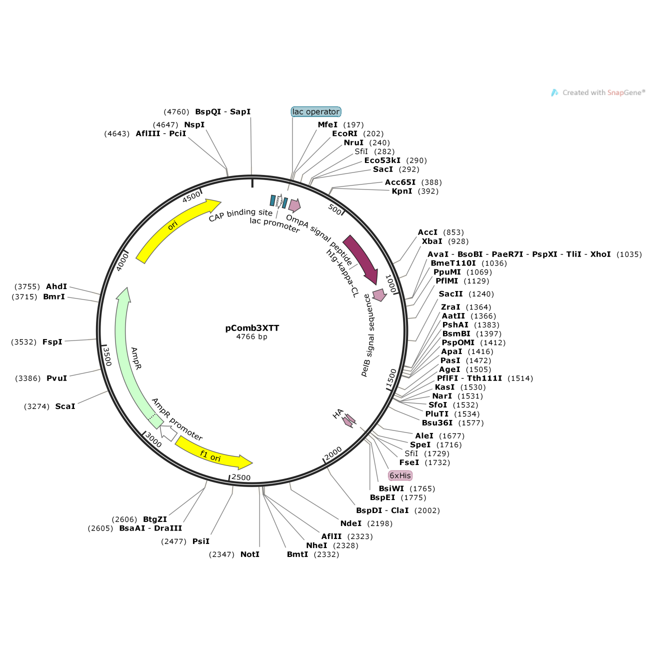 规格:20μl质粒启动子:Lac/lac promoter 质粒分类:噬菌体展示质粒 质粒大小:4766 bp 原核抗性:4766 bp 克隆菌株:stbl3