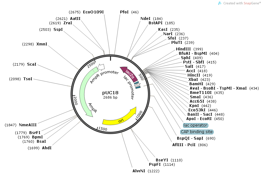 质粒分类:克隆载体 质粒大小:2686 bp 原核抗性:Amp 克隆菌株:DH5α