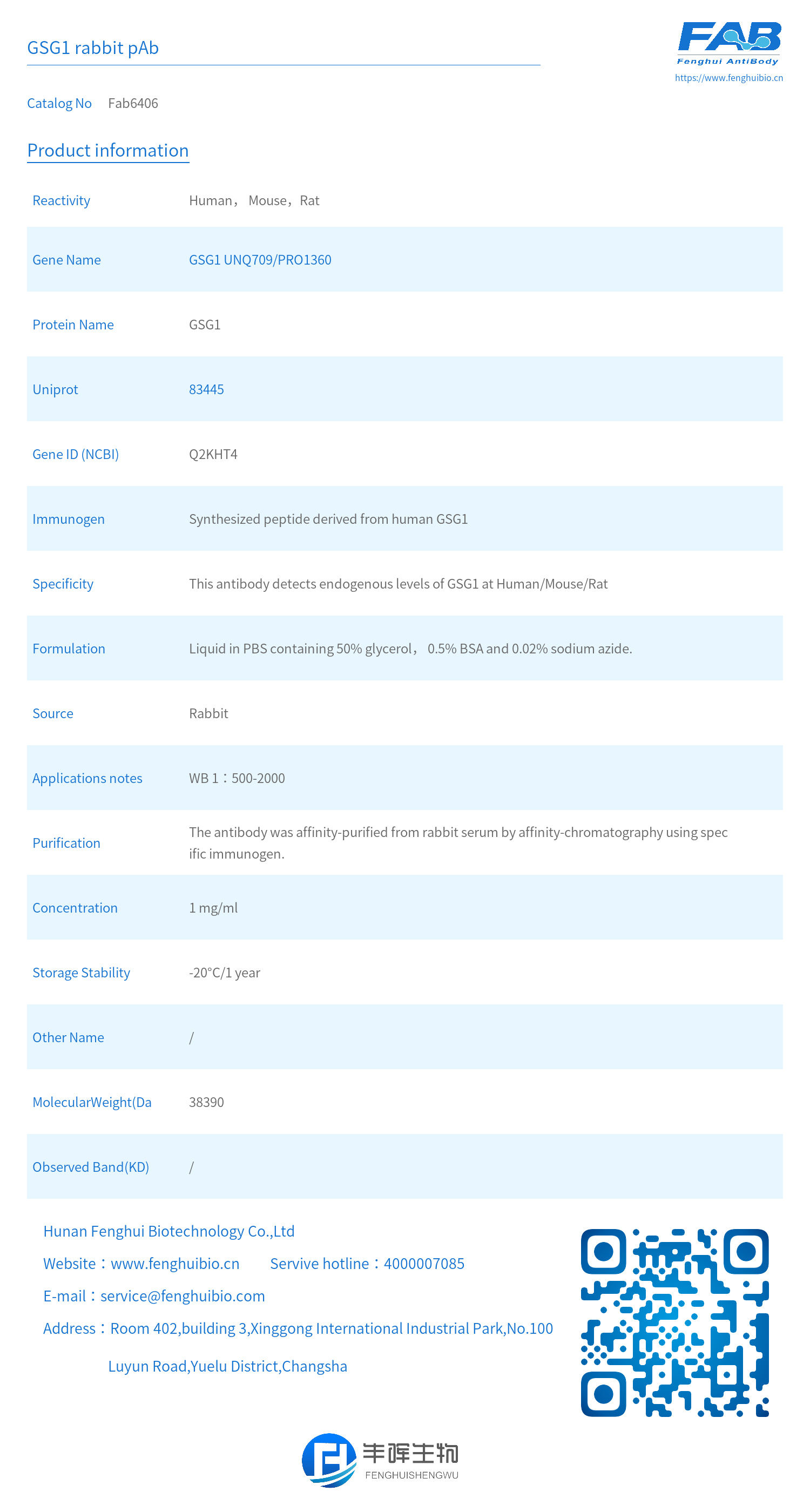 - Specificity: This antibody detects endogenous levels of GSG1 at Human/Mouse/Rat