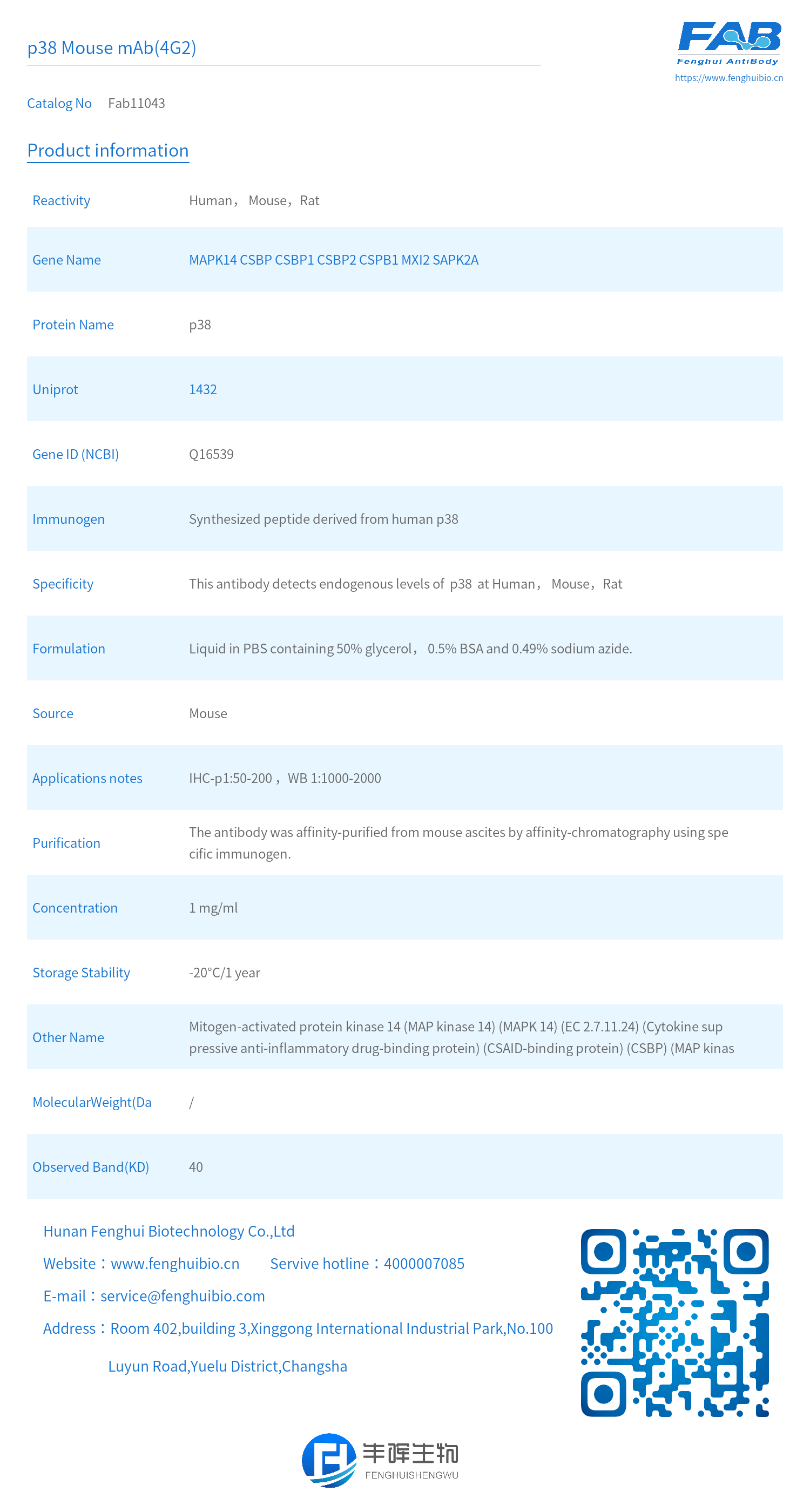 - Immunogen: Synthesized peptide derived from human p38