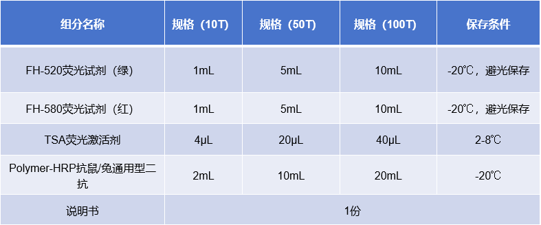 荧光染料工作液配制:将TSA荧光激活剂与FH-XXX荧光试剂按1:500的比例充分混匀后使用