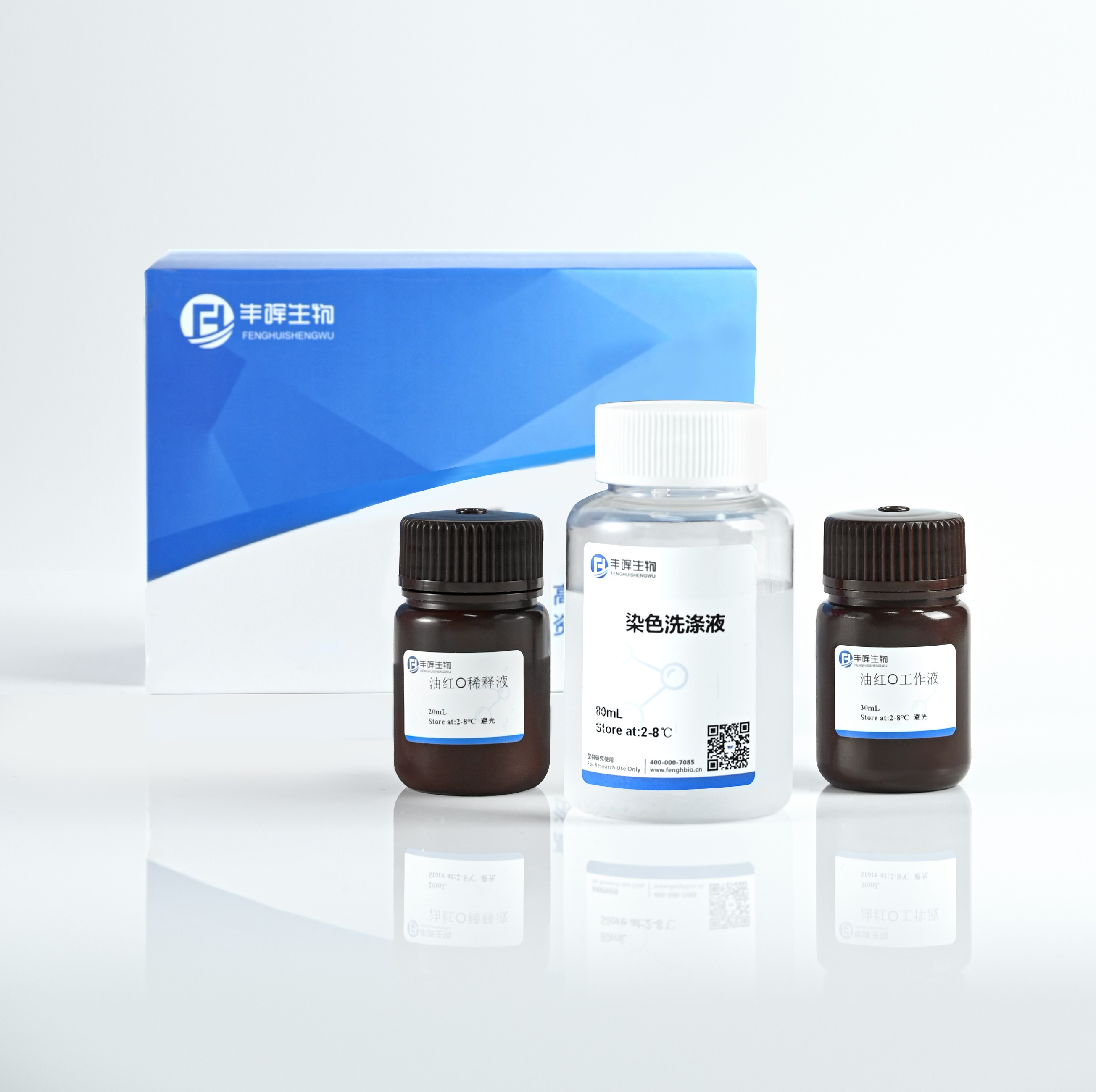 油红O染色试剂盒是一种通过油红O染料特异性地使培养的脂肪细胞中的脂滴或组织内的甘油三脂等中性脂质染成红色或橙红色的试剂盒。其染色原理是染料在脂质的溶解度较在原溶剂中的溶解度更大,所以在染色时染料就从有机溶剂转移入脂质而使脂肪染色。本试剂盒为针对细胞样本的改良版本,适用于细胞样本的染色,操作便捷,性能稳定,染色效果清晰、鲜明。阳性染色结果呈橘黄至红色,具体颜色因脂质浓度而定。
